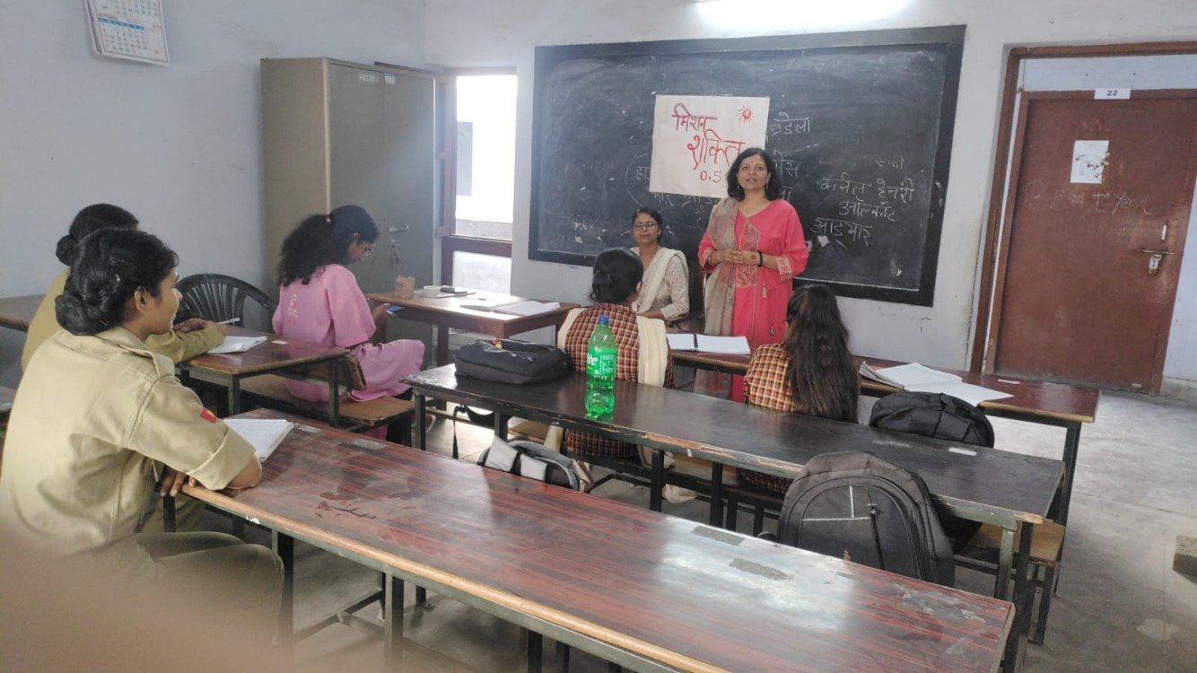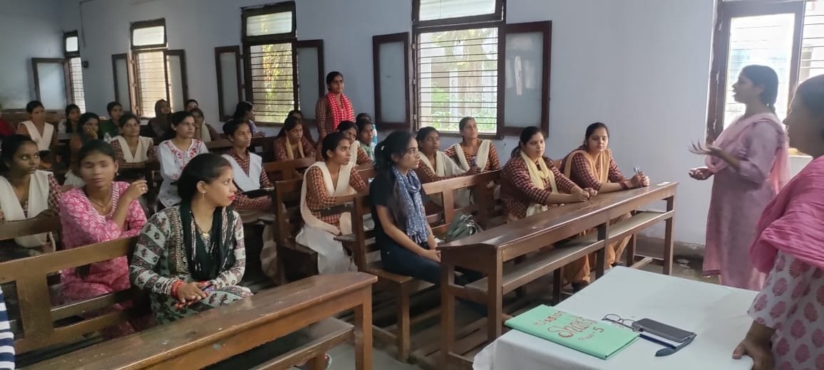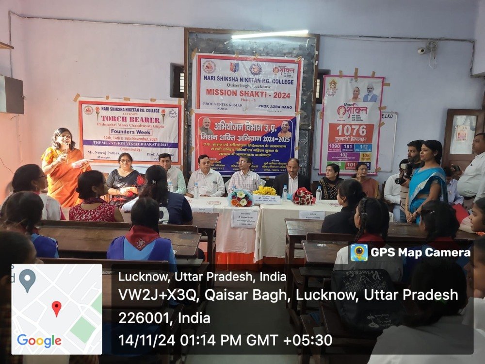 मुख्य अतिथि श्री चंद्रशेखर त्रिपाठी द्वारा छात्राओं को विभिन्न कानूनों, अधिकारों और हेल्पलाइन नंबरों की विस्तृत जानकारी दी गई।