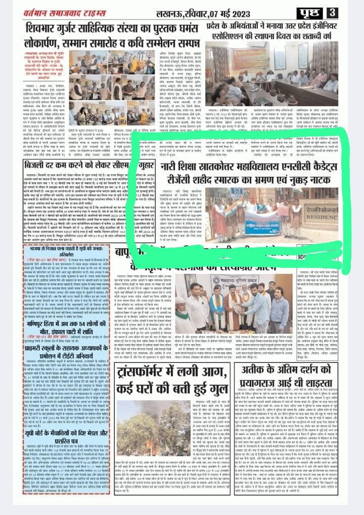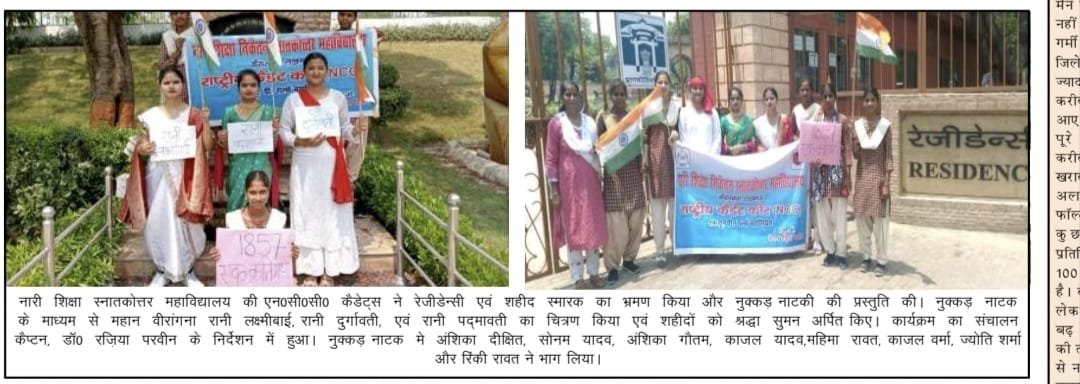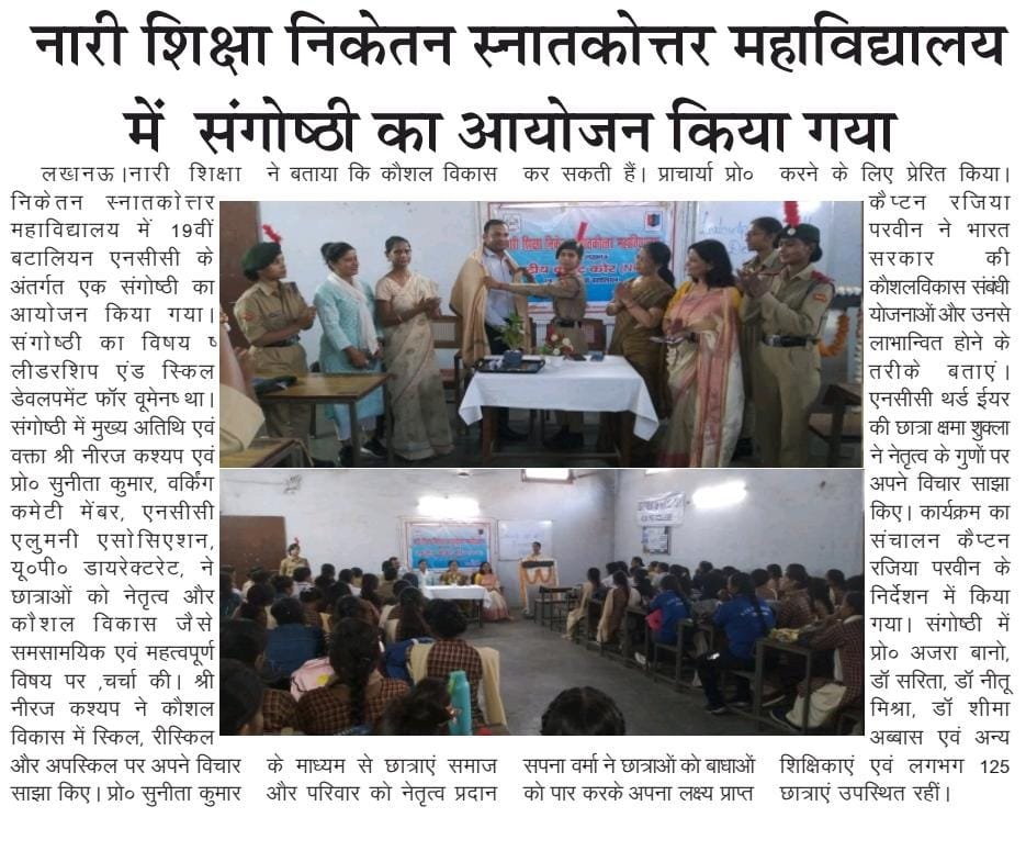 प्राचार्या प्रो. सपना वर्मा के संरक्षण में "गो ग्रीन, ब्रेथ क्लीन" थीम पर संगोष्ठी का आयोजन हुआ। मुख्य वक्ता डॉ अंतिमा चौधरी ने व्याख्यान दिया। कैडेट अंशिका ने कविता प्रस्तुत की। मेजर प्रो. रजिया परवीन ने 40 कैडेटों को पर्यावरण सुरक्षा की शपथ दिलाई।